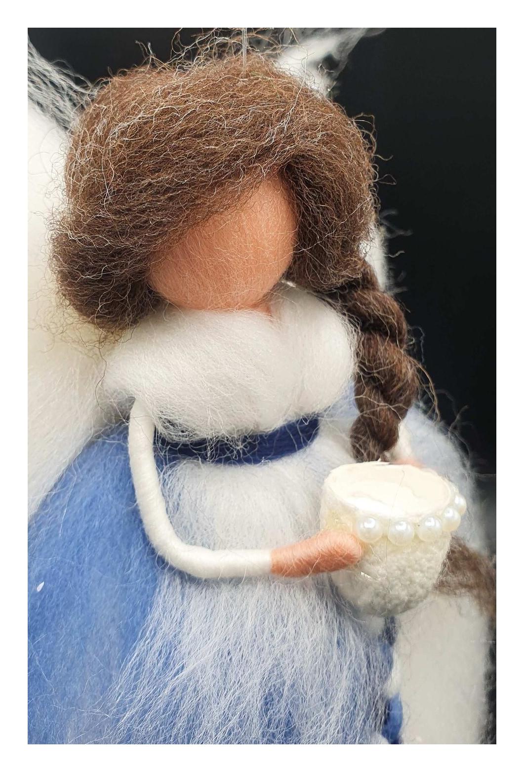Diese Duftelfe erscheint in wunderbarem Himmelblau und anderen Blautönen. In den Händen hält sie einen echten Seidenkokon, verziert mit kleinen Perlen. Dieser nimmt gerne deinen Lieblingsduft in Form eines Aromaöles auf und gibt ihn dann nach und nach an dein Zuhause ab - ein Aromadiffuser der anderen Art.