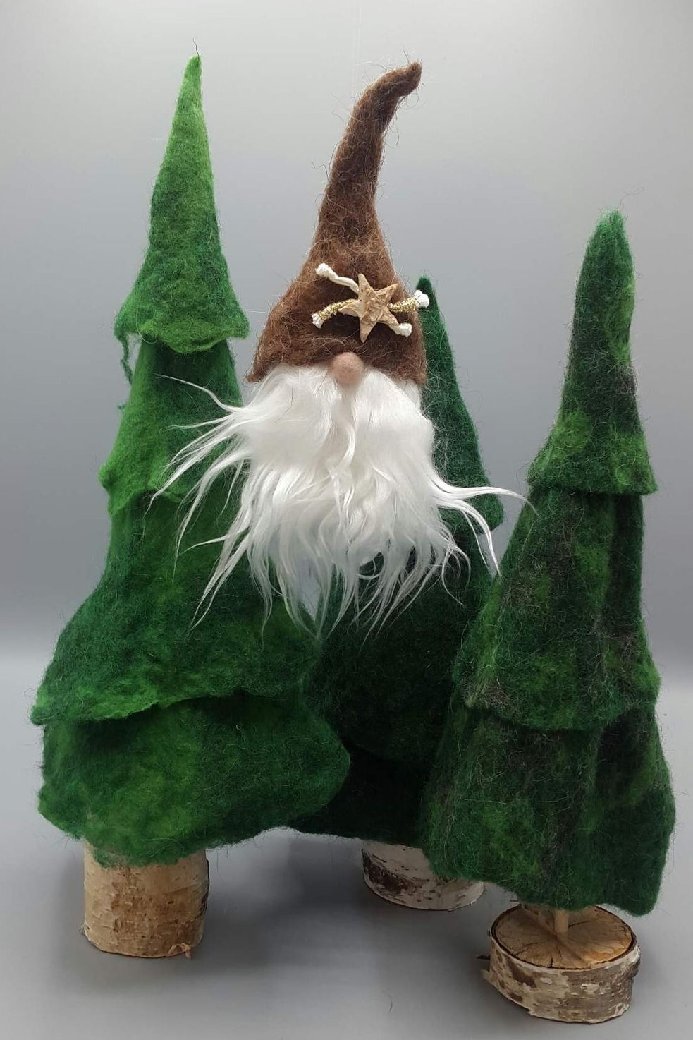 Diese Wichtel haben einen gefilzten Wichtelhut, ein gefilztes Näschen und einen Bart aus Zottelfell.
