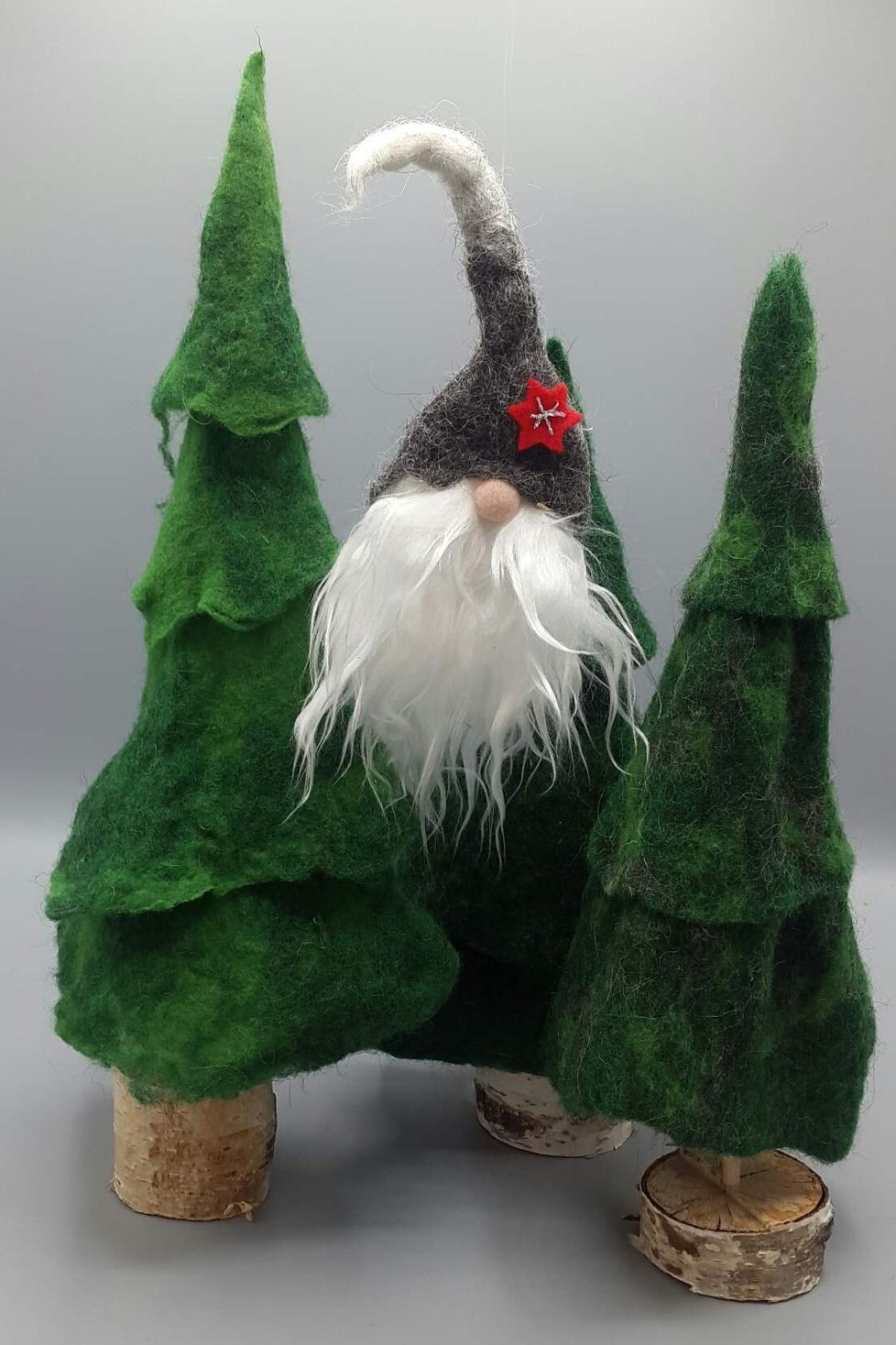 Diese Wichtel haben einen gefilzten Wichtelhut, ein gefilztes Näschen und einen Bart aus Zottelfell.